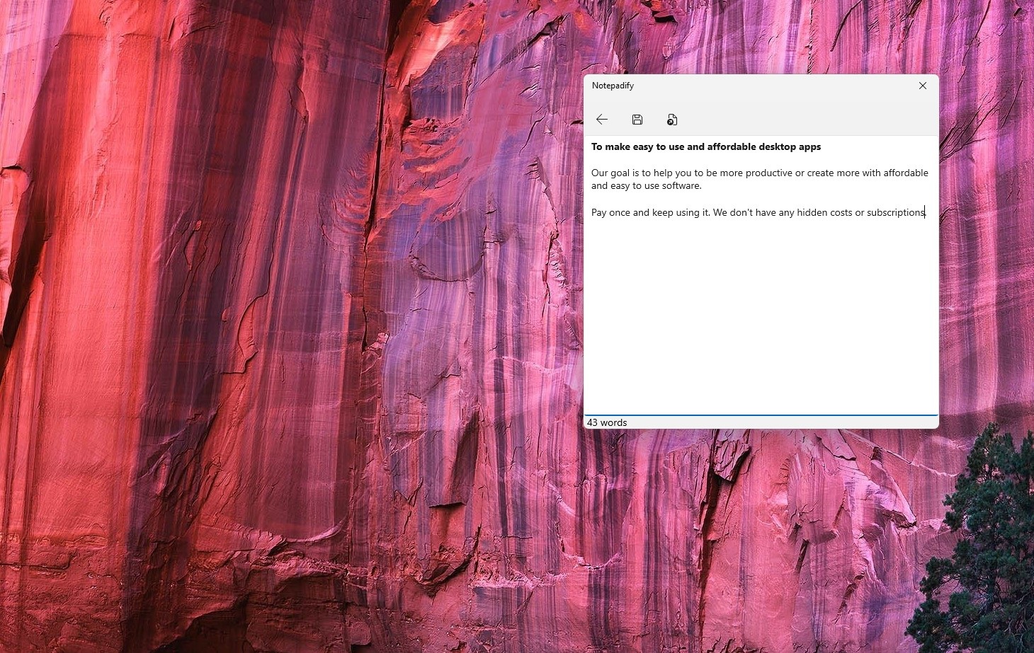 This feature allows Notepadify stay always easily accessible. If you scroll internet or have other applications open "Always on top" feature will keep Notepadify window top of everything. This way you can easily add notes without worrying that you would need to resize windows all the time or bring app back up all the time.